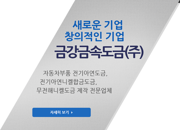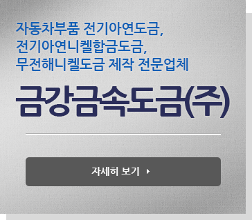 ABOUT G.K.M금강금속도금(주)를 소개합니다. 회사소개자세히보기 설비현황자세히보기 제품현황자세히보기 측정장비자세히보기 PRODUCTS금강금속도금(주)의 주요 취급제품을 소개합니다. 아연 자세히보기 아연니켈합금 자세히보기 무전해니켈도금 자세히보기 CONTACT US금강금속도금(주)를 만나보세요. 찾아오시는 길 Location 고객센터 Customer center궁금하신 사항은 언제든지 문의해주세요. (051) 266-8384H.P: 010-5546-4420ADD: 부산광역시 사하구 다산로225번길 6 (장림동 1088-13) 공지사항 Notice 제목 작성일